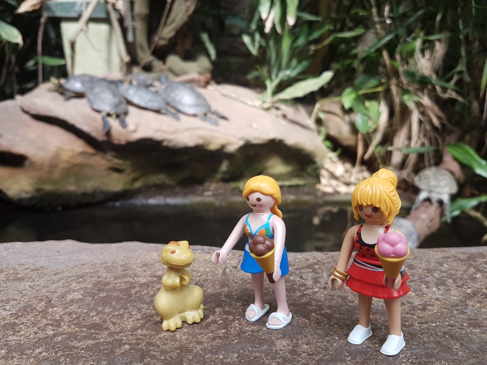 Mittlerweile braun gebrannt erkunde ich zusammen mit Jolande das Innere der Insel: An der Tierwelt nehmen wir uns ein Vorbild zum entspannen: Trüffel: "He du, warte!" Trüffel: "Hallo, ihr da, gehört ihr auch zur Familie?" Trüffel: "Du, Jolande, die dahinten sehen aus, als ob sie zur Familie gehören würden. Aber sie antworten nicht!"