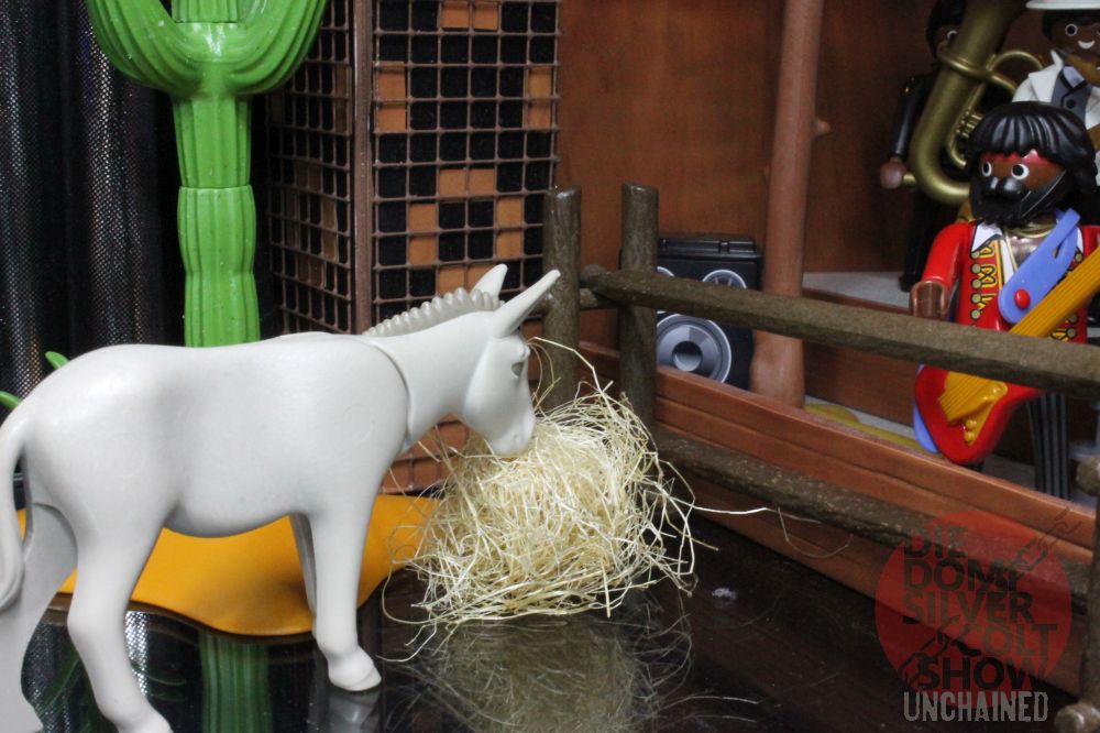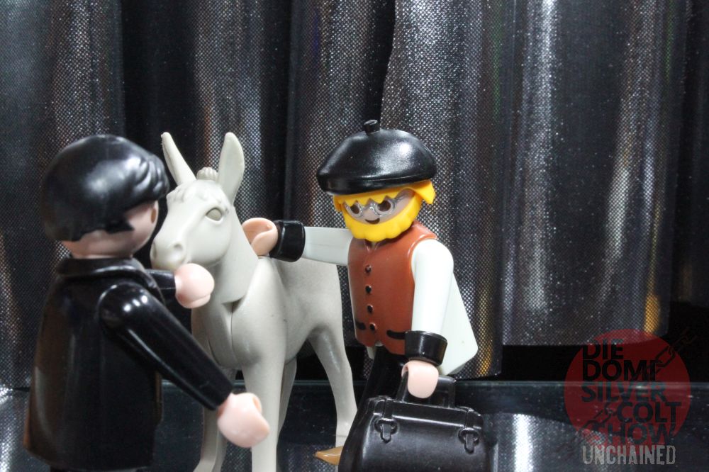 auf dem Esel... die ganze Strecke von Barcelona bis hierher...