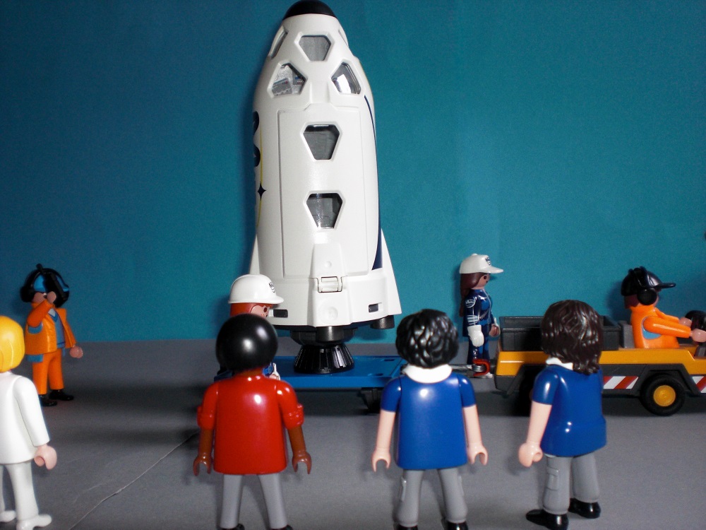 Später, als das Raumschiff an der Startrampe angekommen ist,