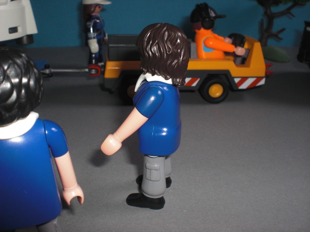 Am Flugplatz angekommen, treffen sie einen Techniker,