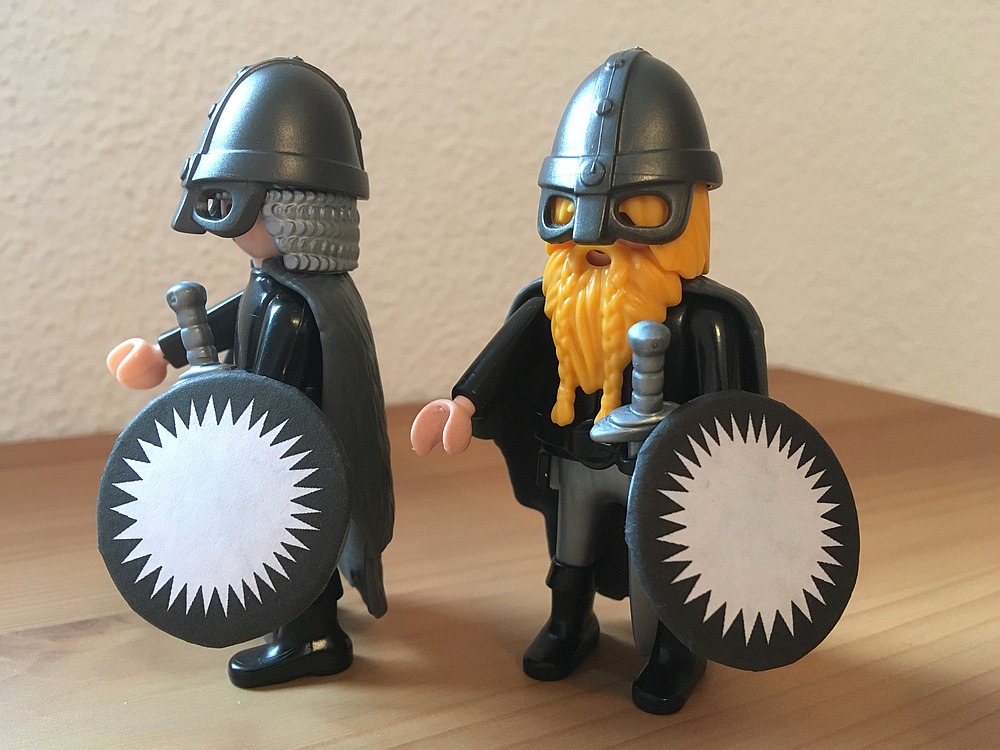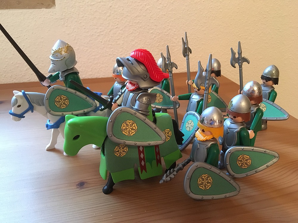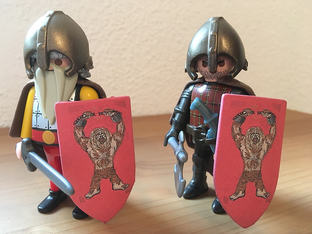 Problem am Buch ist oft, dass dort Sachen beschrieben werden, die man nicht so einfach nachbauen kann. Die Söhne der Freys haben zum Beispiel Helme in Form der Zwillingstürme. Sowas gibt´s halt nicht von Playmobil.
