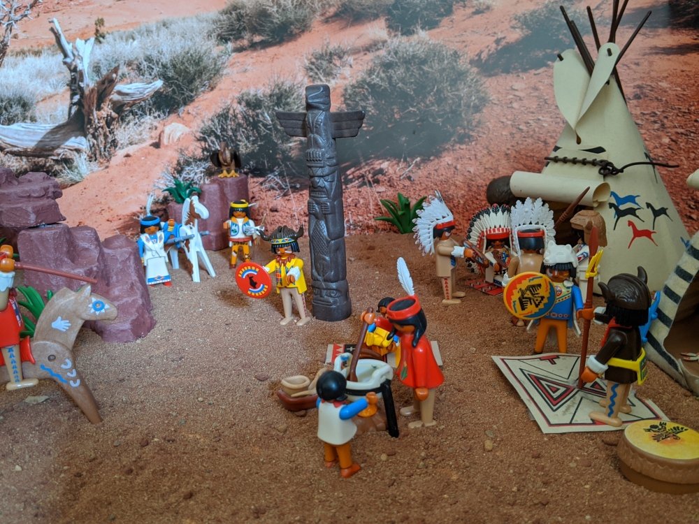 Mir gefällt v.a. wie toll doch auch das alte/ mittelalte Playmobil wirkt, auch in den vorherigen (nicht nur Indianer) Szenen.