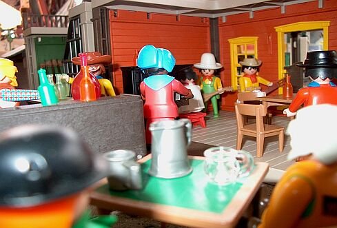 Sie betreten den Saloon und suchen nach einem netten Plätzchen.