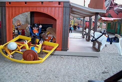 Historisch sicher nicht ganz einwandfrei gestaltet so hatten wir vor 17 Jahren als wir noch Anfang der 20er waren riesen Spaß die Story zu gestalten. Heute freut es mich einfach wenn ich die alten Figuren und die bemalten Schilder sehe. Was mich als Kind schon genervt hat habe ich dann in meinen Customizeprojekten verwirklicht. Und nun viel Spaß Buck und Jack.