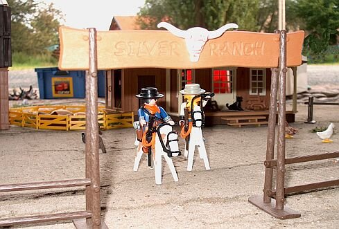 Buck und Jack sind die Besitzer der Silver-Ranch. Sie sitzen gemütlich auf der Veranda, um die Arbeitsplanung für den nächsten Tag zu besprechen.