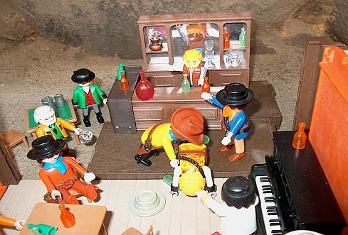 Der Barkeeper Joe und die Bedienung haben alle Hände voll zu tun. Die Luft ist staubtrocken und die Gäste haben mehr als sonst das Verlangen Ihre ausgetrockneten Kehlen zu ölen.