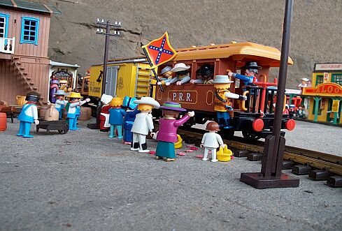 Historisch sicher nicht ganz einwandfrei gestaltet so hatten wir vor 17 Jahren als wir noch Anfang der 20er waren riesen Spaß die Story zu gestalten. Heute freut es mich einfach wenn ich die alten Figuren und die bemalten Schilder sehe. Was mich als Kind schon genervt hat habe ich dann in meinen Customizeprojekten verwirklicht. Und nun viel Spaß Buck und Jack.