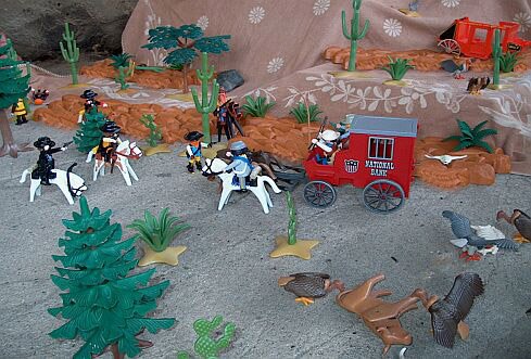 Etwas abgelenkt von den aasfressenden Geiern rennt der schwerbewachte Goldtransport direkt in die Hände einer Gangsterbande.