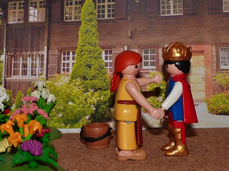 Und ein solches hatte er gefunden, zwar nur das eines armen, schlichten Gärtnermädchens, das aber voll war von reiner Liebe und frommem Glauben. Diese Jungfrau war dem Königssohn bald so innig befreundet, dass der Jüngling ihr zu Füßen sank und ihr ewige Liebe und Treue schwur.