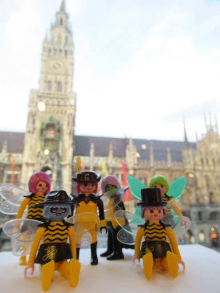 Und die Bienchen kamen so maskiert aus dem Bienenstock heraus.