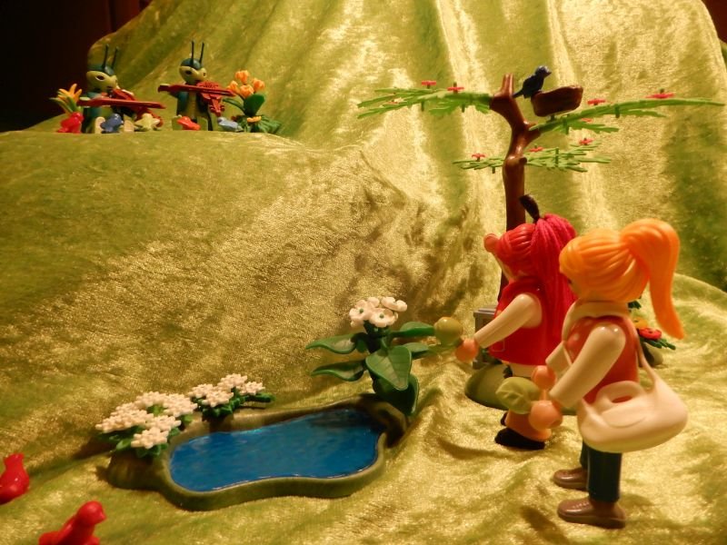 "Mal sehen, an was ich mich noch erinnere", meint Artona und schlägt das Buch auf. Unbemerkt haben sich Esmeralda und Espen angeschlichen und beginnen zu spielen