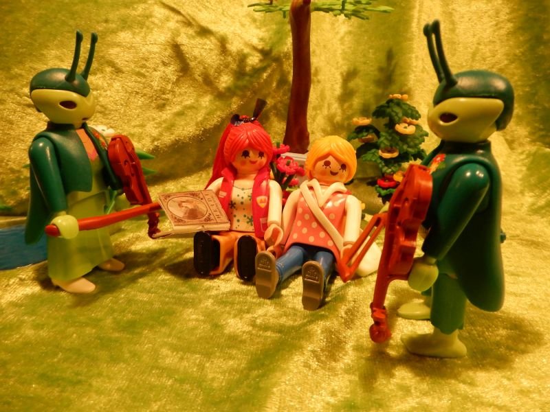 "Siehst du, Esmeralda, es ist ganz einfach, Menschenkinder zum Schlafen zu bringen", meint Espen leise. "Unsere Musik ist zu zauberhaft für sie."