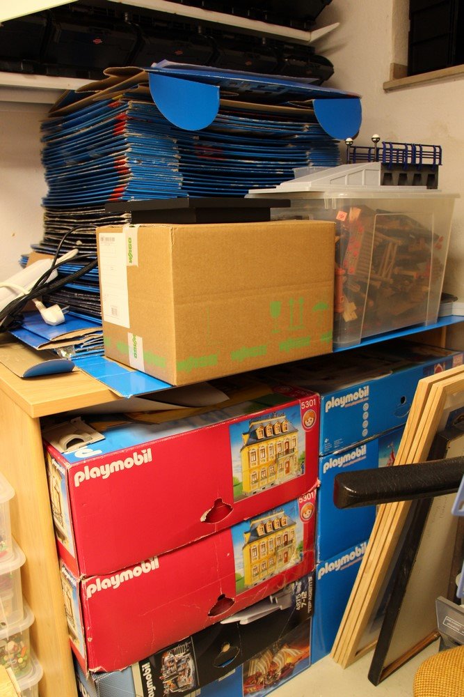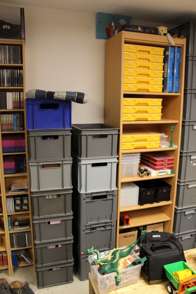 Bild 01 Bild 02 Bild 03 - in den Sortierboxen befinden sich Sys-X Kleinteile Bild 04 - in den grauen Kisten befinden sich die Sys-X Platten aller größen Bild 05 Bild 06 Bild 07 - sollte eigentlich ein Figurensteckplatz werden - aber wohin mit all den gefalteten Schachteln?
