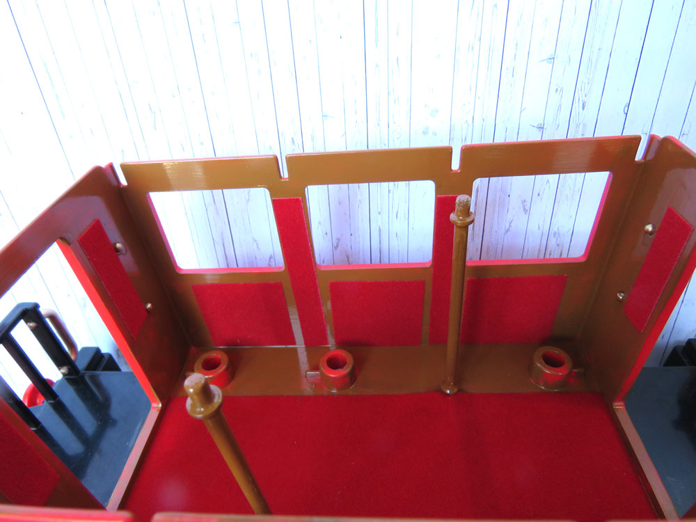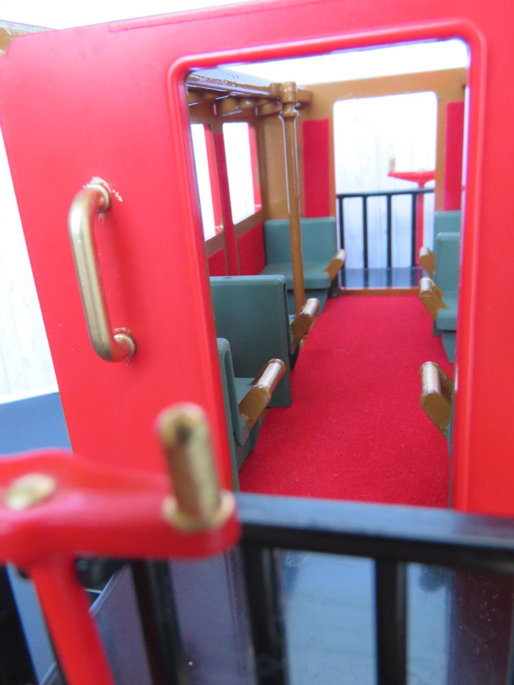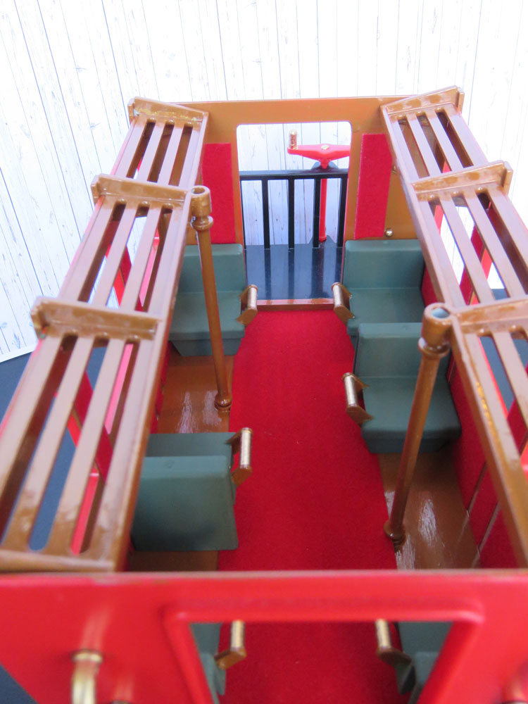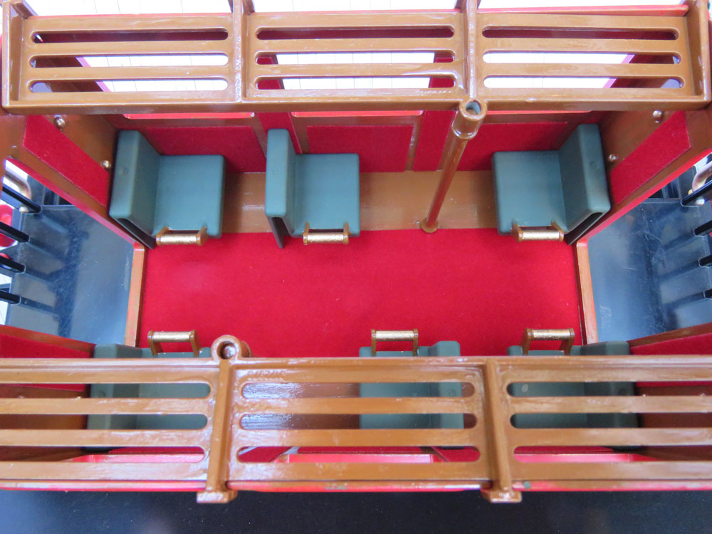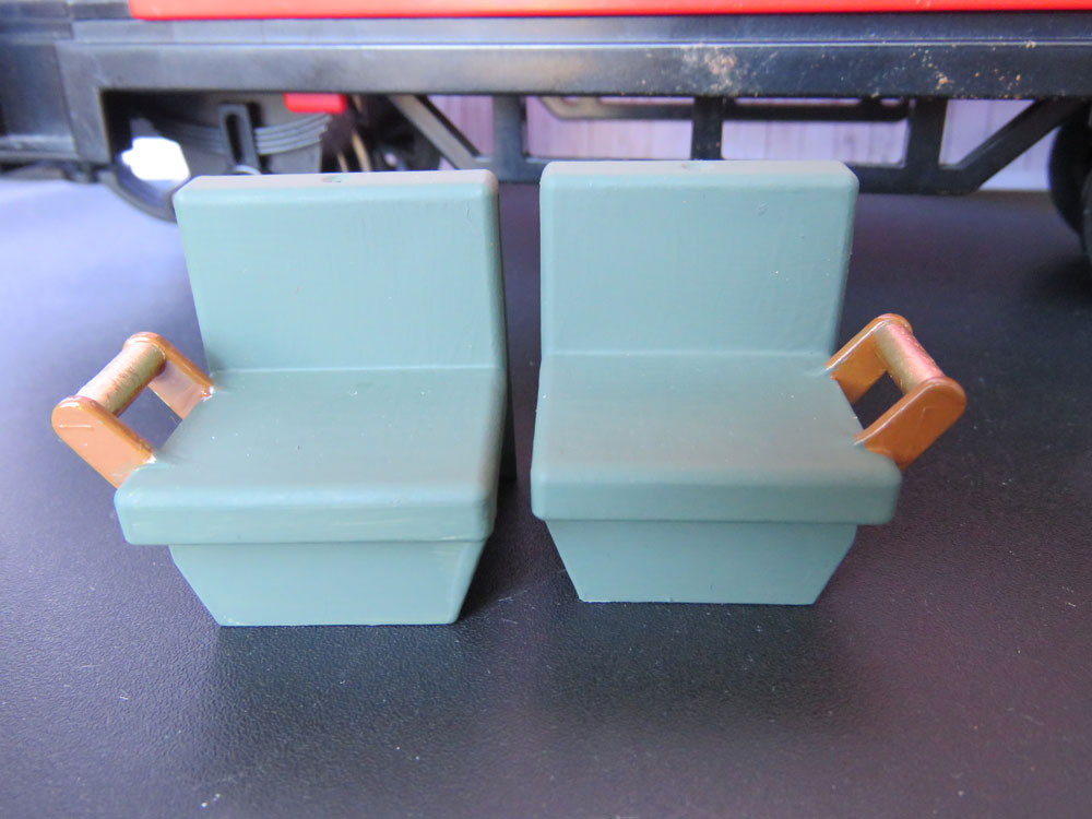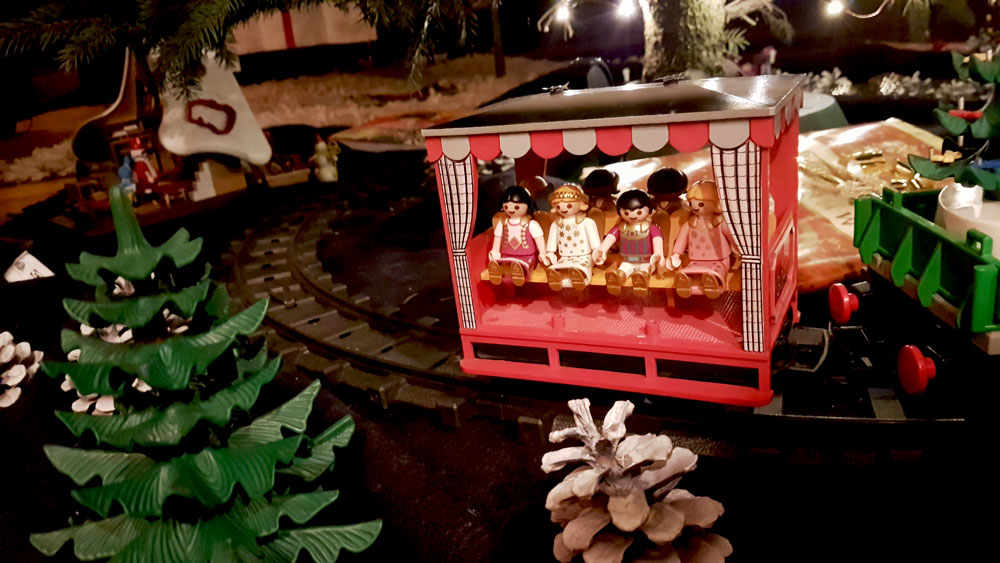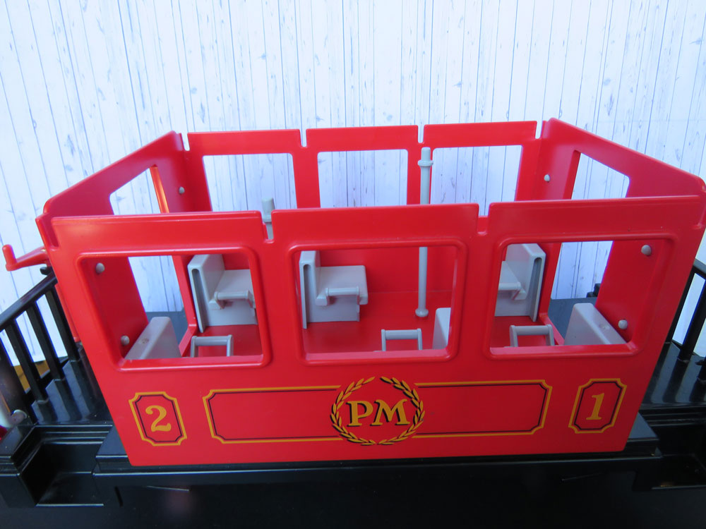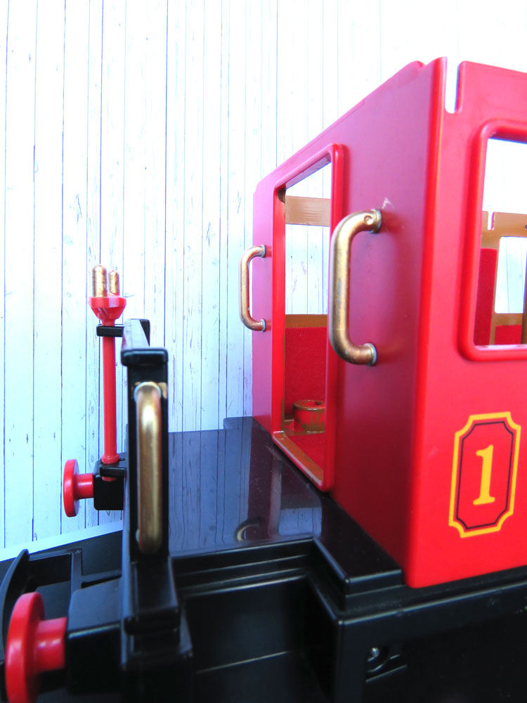 Ich wollte schon immer mal eine Eisenbahn - also bestimmt schon seitdem ich 6 Jahre alt bin und mit meinem Schulfreund mit seiner Märklin-Bahn gespielt habe. Jetzt habe ich eine kleine, nette Bahn von Playmobil. Sie wird in der Weihnachtszeit um den Tannenbaum fahren - und nur dann - also startet die Weihnachtszeit ab jetzt sehr früh! :kicher und ich schaue mal, ob ich nur verhandeln kann und sie auch um den Adventskranz cruisen darf... Naja auf jeden Fall habe ich mir das Startset 4017 gekauft und war schon mal selig. Aber für die Weihnachtszeit und überhaupt gefielen mir die grauen Plastiksitze und überhaupt die graue Farbe der Ausstattung und des Daches so überhaupt nicht. Also habe ich ein wenig den Pinsel geschwungen. (Beim Bearbeiten der Fotos ist mir dann leider aufgefallen, dass ich unsauber gearbeitet habe - seufz...)