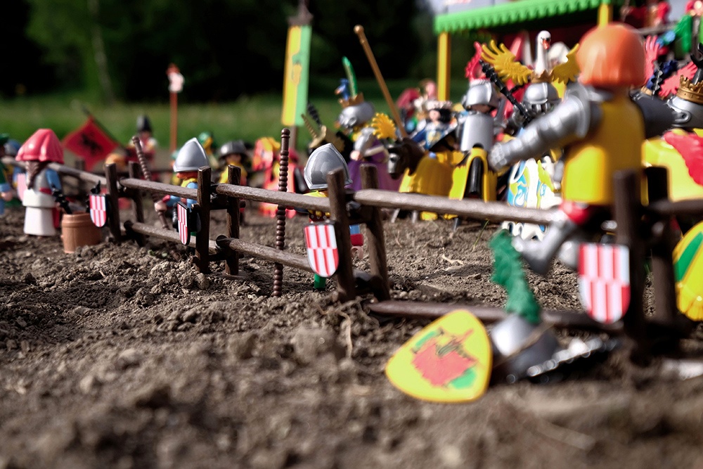 - Die Ritter sind falsch ausgerüstet, die in einem Kolbenturnier verwendeten Kolben haben nichts mit den von mir verwendeten Streitkolben gemein, besser wären noch (stumpfe) Schwerter gewesen
