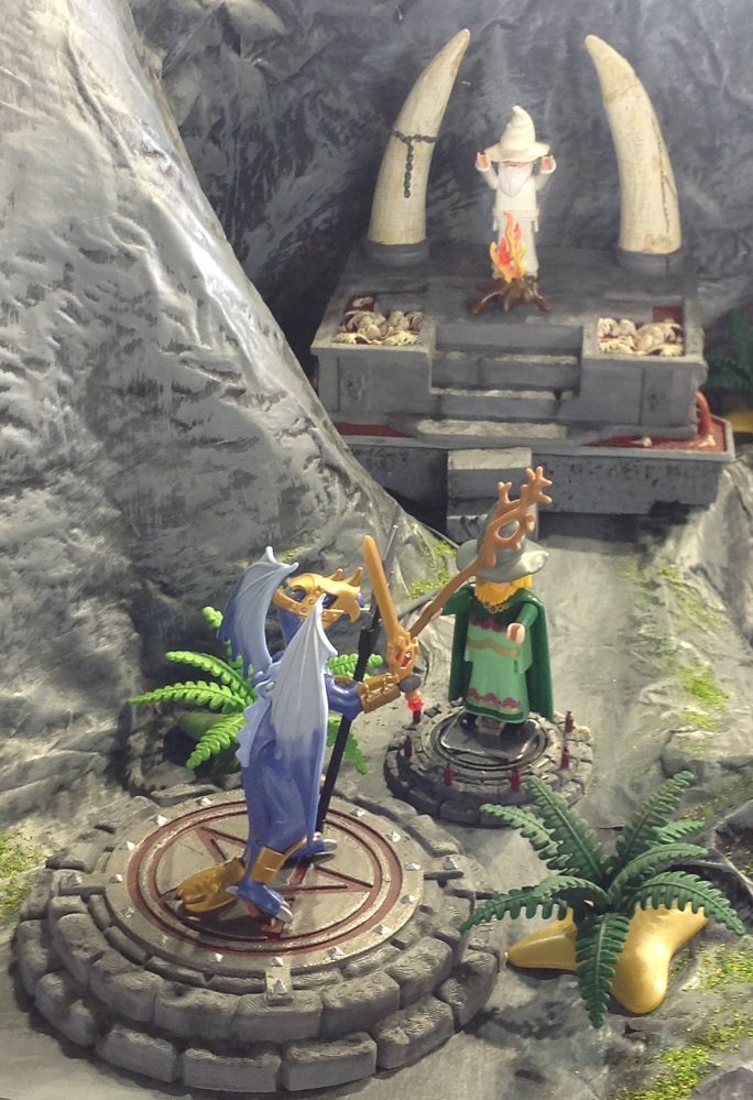 Viel einfacher hatten es die Zauberer, Hexen, Druiden und Konsorten .... während im Hintergrund noch ein Feuerbeschwörungszauber läuft, hat der Zauberer vorne seinen Dämon schon heraufbeschwört.