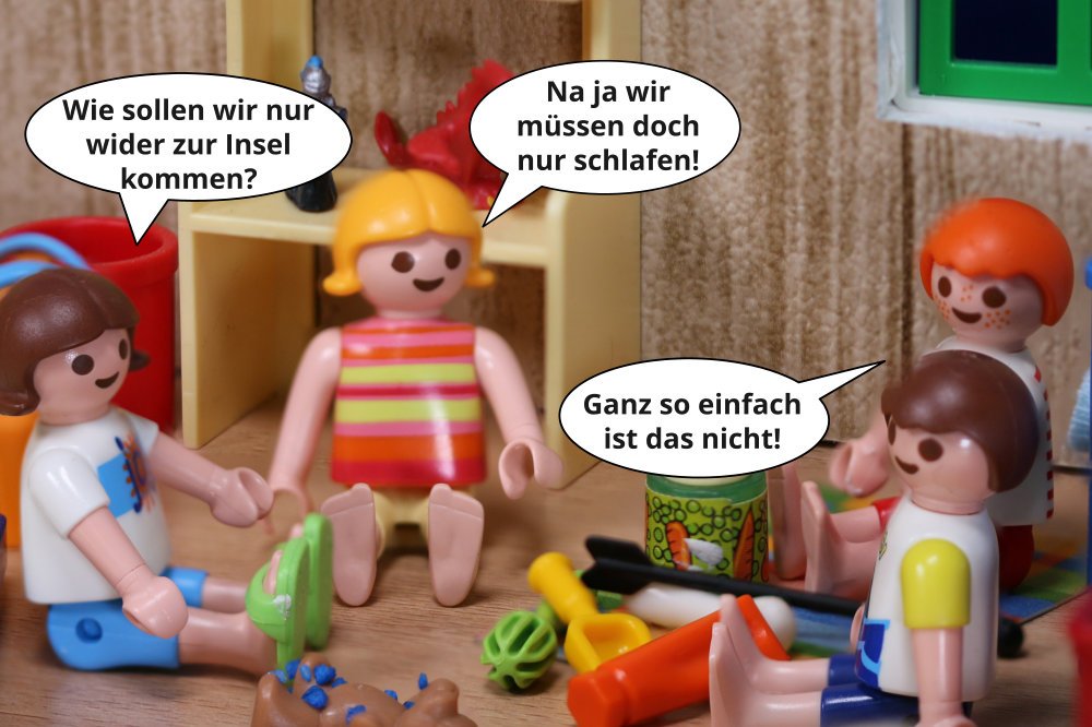 Das war die Geschichte vom Inselsturm, aber die Kinder brechen gleich nach dem Frühstück auf zu einem neuen Abenteuer.