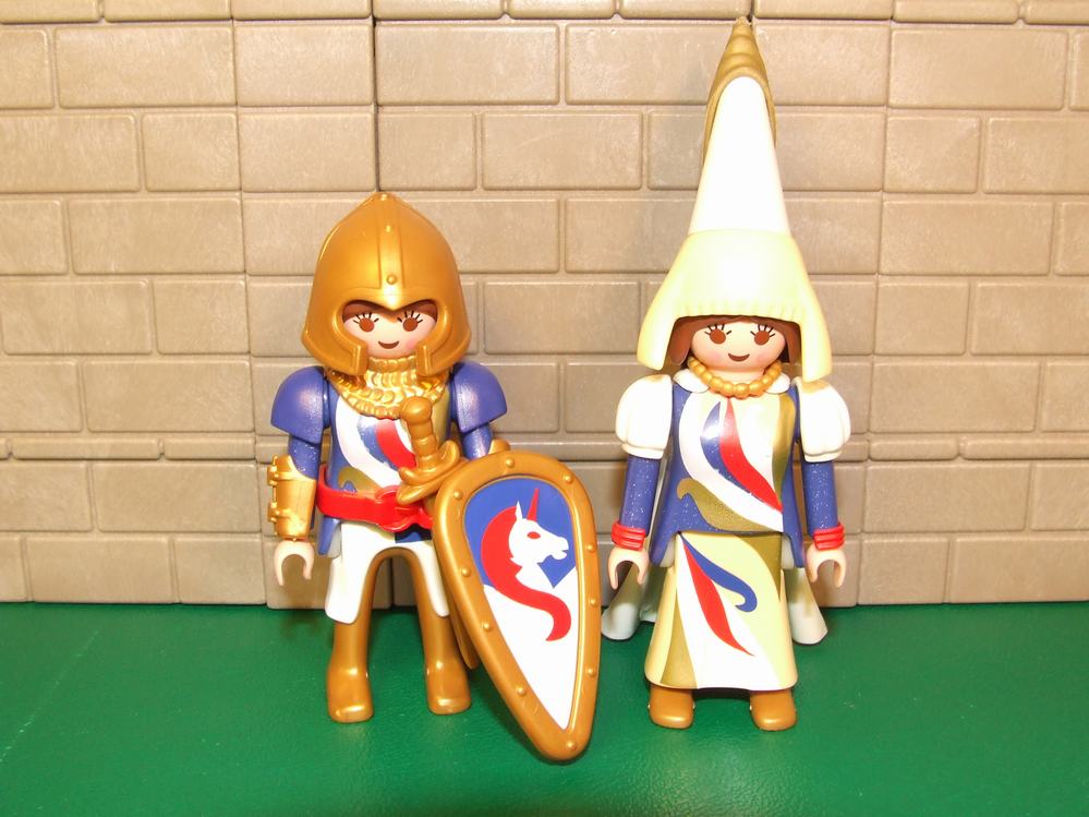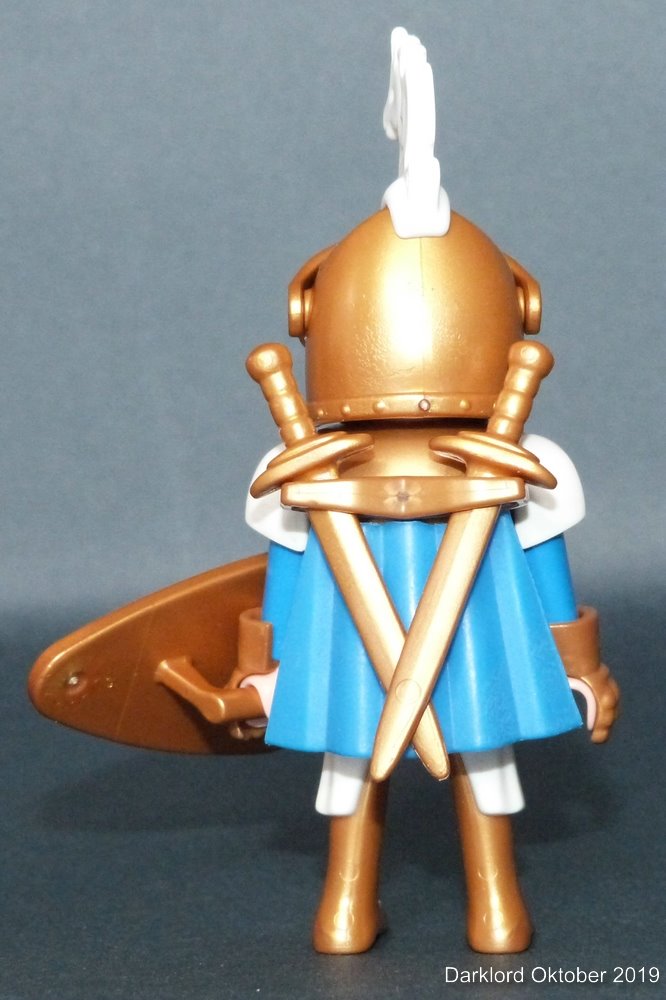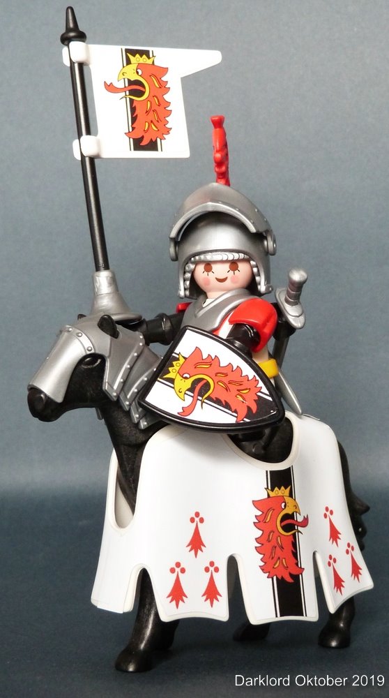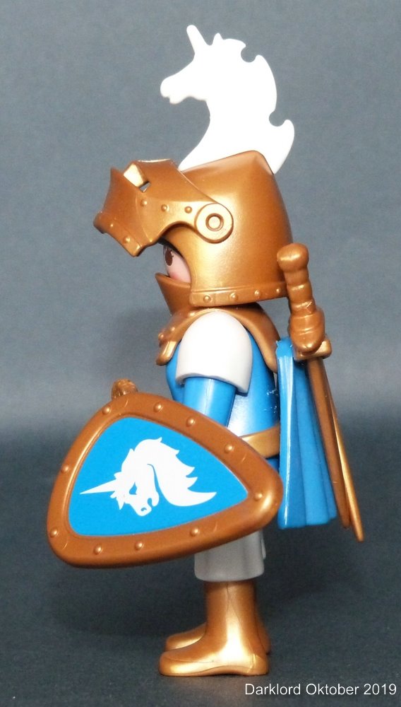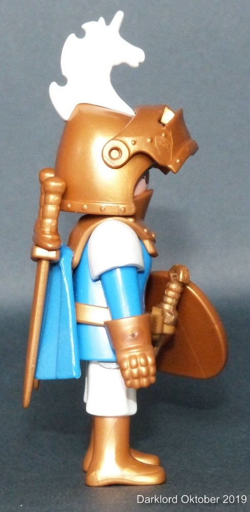 Die nächste Figurengruppe zeigt, in welche "Schwierigkeiten" man geraten kann, wenn man sich einbildet, zu einer gegebenen Zivilversion eine passende Kriegerin basteln zu können. :wirr :klonk Wenn ich auch bei der Kriegerinnen-Version nur diesen exklusiven Goldton verwenden will, kriege ich spätestens beim Pferd wieder die üblichen Probleme: Einen Kopfpanzer gibt es, eine Schabracke in dem passenden Farbton auch, aber da ist wieder kein Wappen drauf. Außerdem suche ich noch zwei ordentliche Langschwerter in dem Goldton und eine Idee für Schild und Lanze. :gruebel