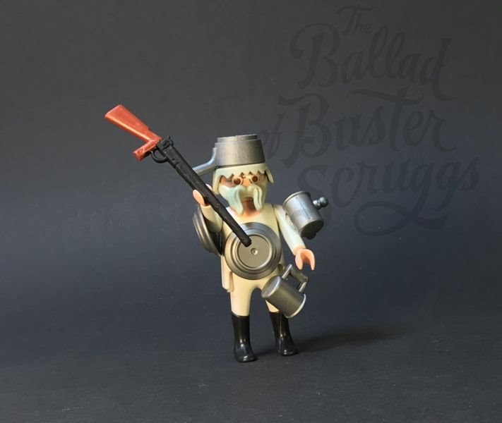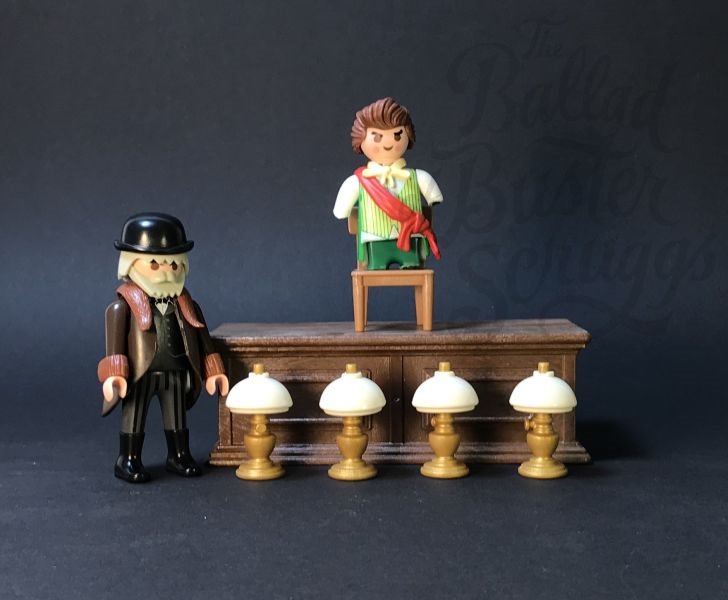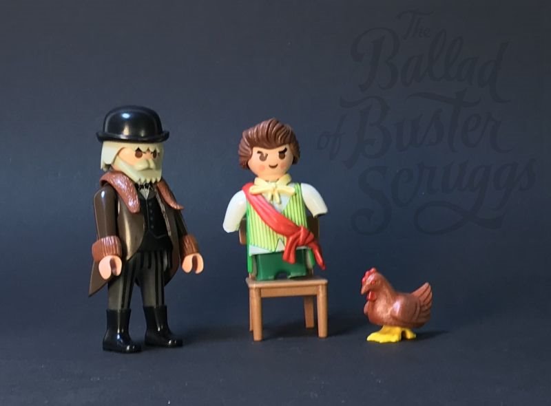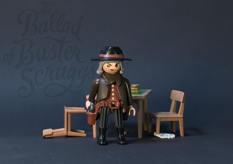 Weiter geht es mit Curly Joe, einem ziemlichen Stinkstiefel, der eine Auseinandersetzung mit Buster Scruggs im Saloon von Frenchman's Gulch hat.