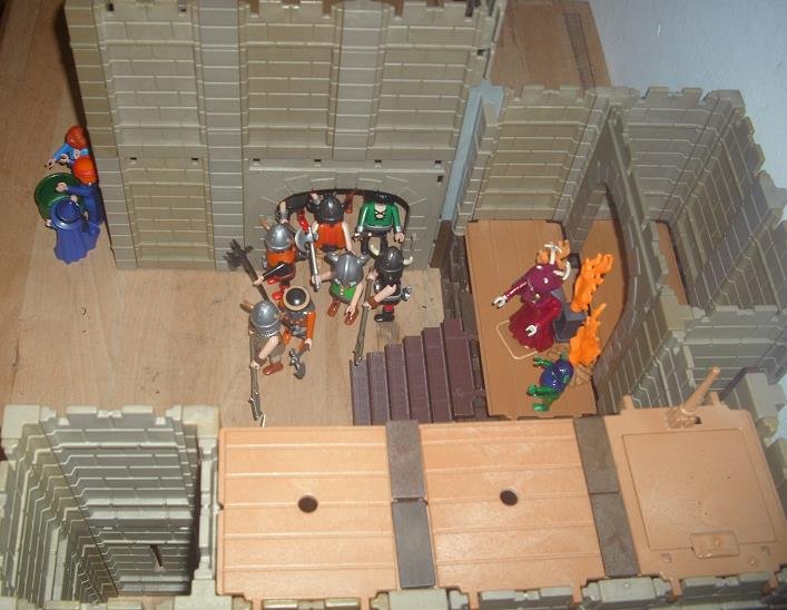 Natürlich mein Dank an viele Teile-Lieferanten wie Customizer, Aine und Playmobilfreak, ohne die es weder die tollen Treppen, halben Verbinder, Trompetenärmel des gehörnten Königs oder das blaue Stirnband der Hexe in diesem Diorama gegeben hätte. Vielen lieben Dank!