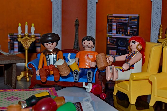 Der Doc schnapp sich jetzt Sitznachbar Zwergnase „Huckepack“ und dann gehts erstmal an die Bar - Paaaaaarty!