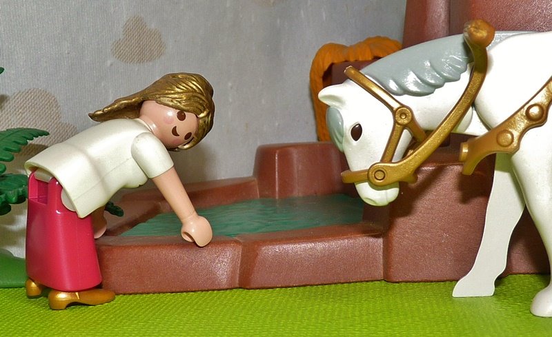 Denn damit, dass diese die Blutstropfen verloren hatte, war sie schwach und machtlos geworden. Als sie nun wieder auf ihr Pferd steigen wollte, das da hieß Falada, sagte die Kammerjungfer: „Auf Falada gehör ich, und auf meinen Gaul gehörst du!“, und das musste sie sich gefallen lassen.