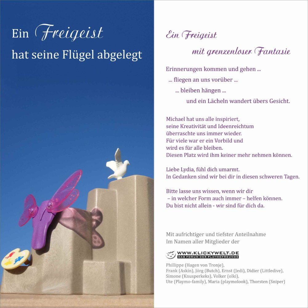 auch hier haben wir eine Beileidskarte im Namen aller Mitglieder der Klickywelt versendet: