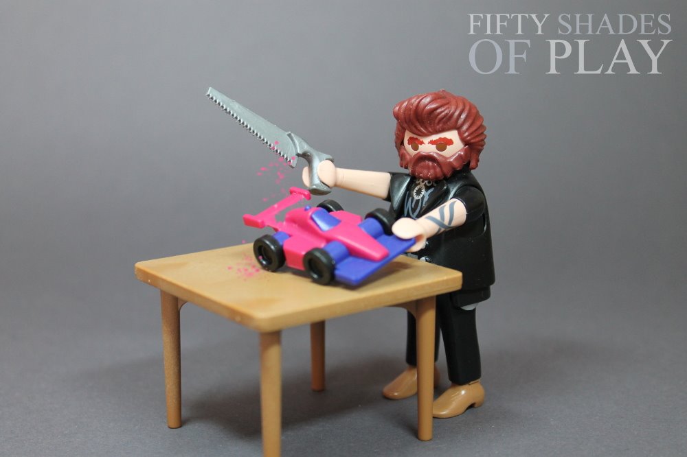 Playmobil ist für ihn nur ein Werkstoff wie jedes andere Material, welches er in seine groben Finger bekommt.