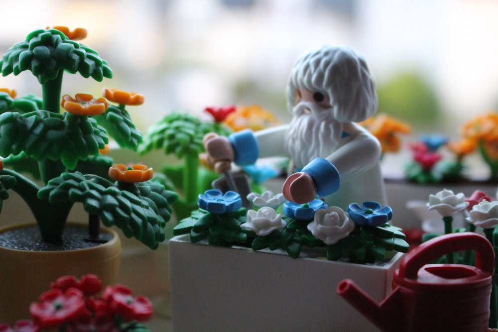 Santa kümmert sich heute morgen um seine Blumen. Nach der langen Hitzewelle brauchen sie ganz viel Pflege und Zuwendung.