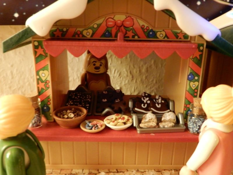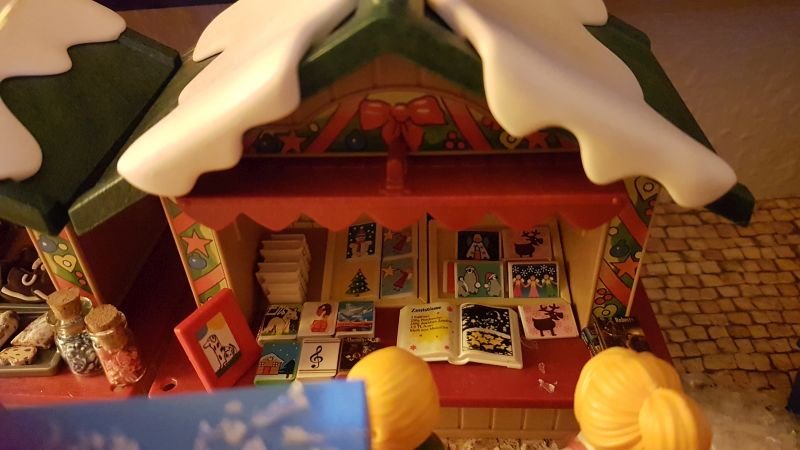 Ein sehr schöner Weihnachtsmarkt, besonders mit der Tapetenrolle im Hintergrund.