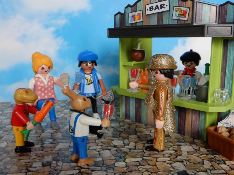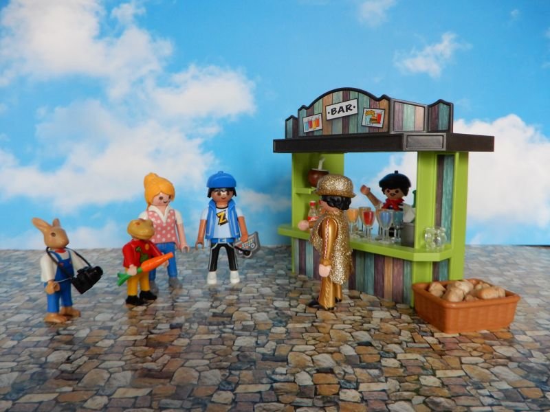 „Was ist denn dort vorne los?“ fragt Möhrchen aufgeregt. Eine Menschenmenge drängt sich aus einem Gebäude. „Das ist eine Spirituosenfabrik. Offensichtlich wurde vergessen, sie abzusichern, und jetzt bedienen sich die Leute selbst", lacht Hans.