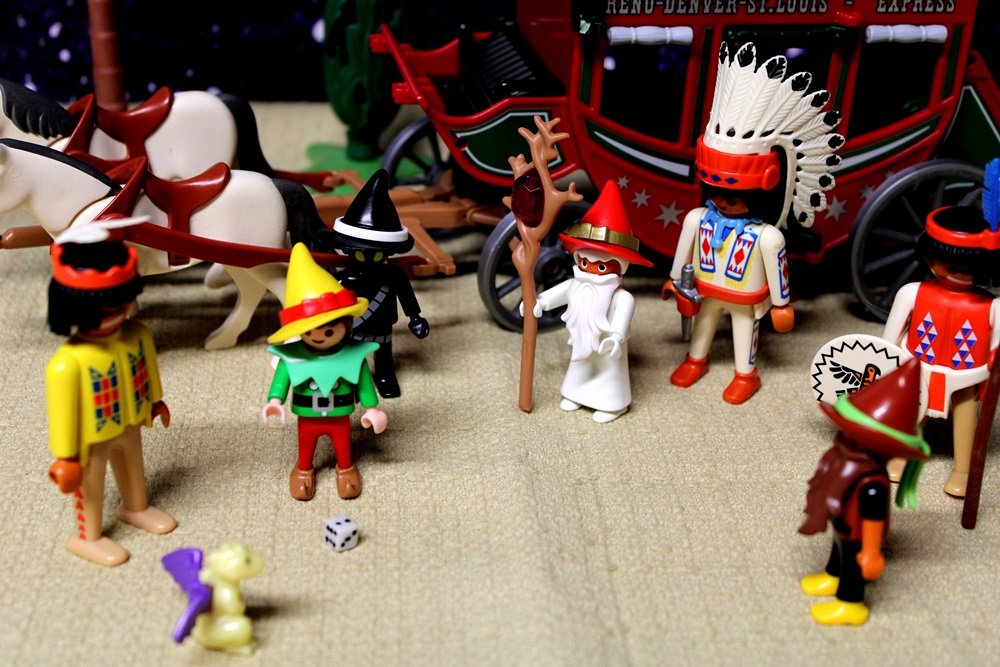 und fordert die Zwerge zu einem Würfel-Düll heraus.