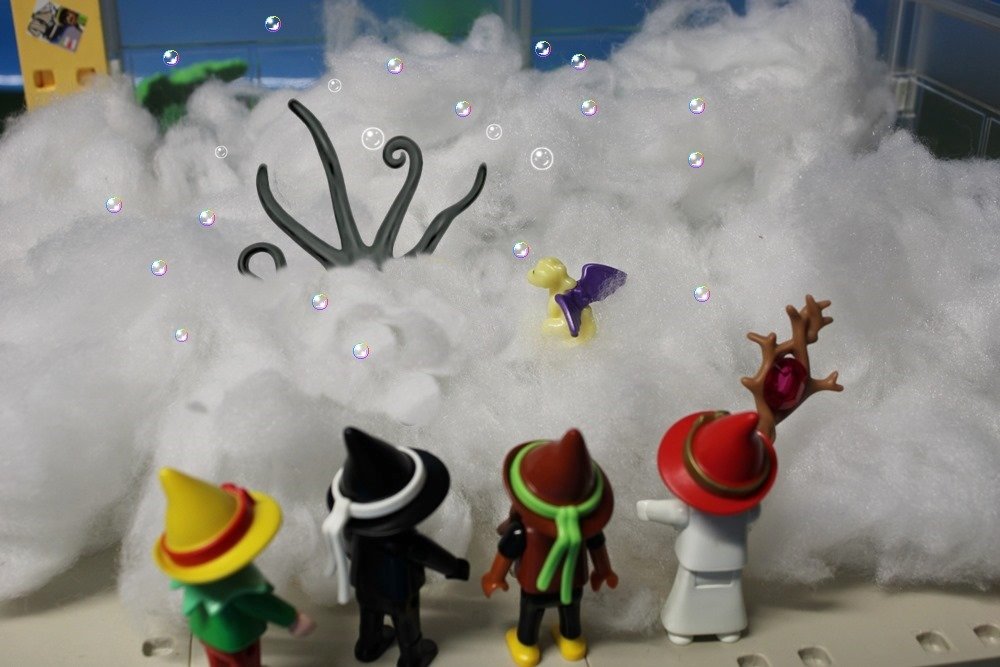 Ponko schreit: "Kraki, Kraki, wie kommen wir hier wieder raus,