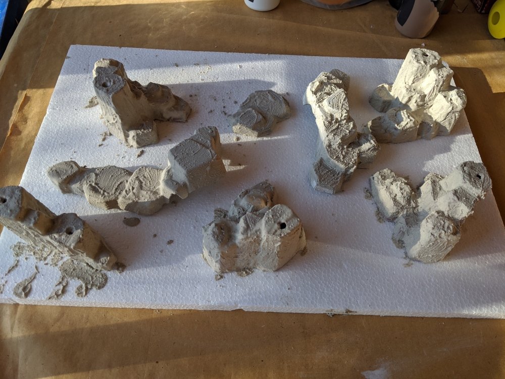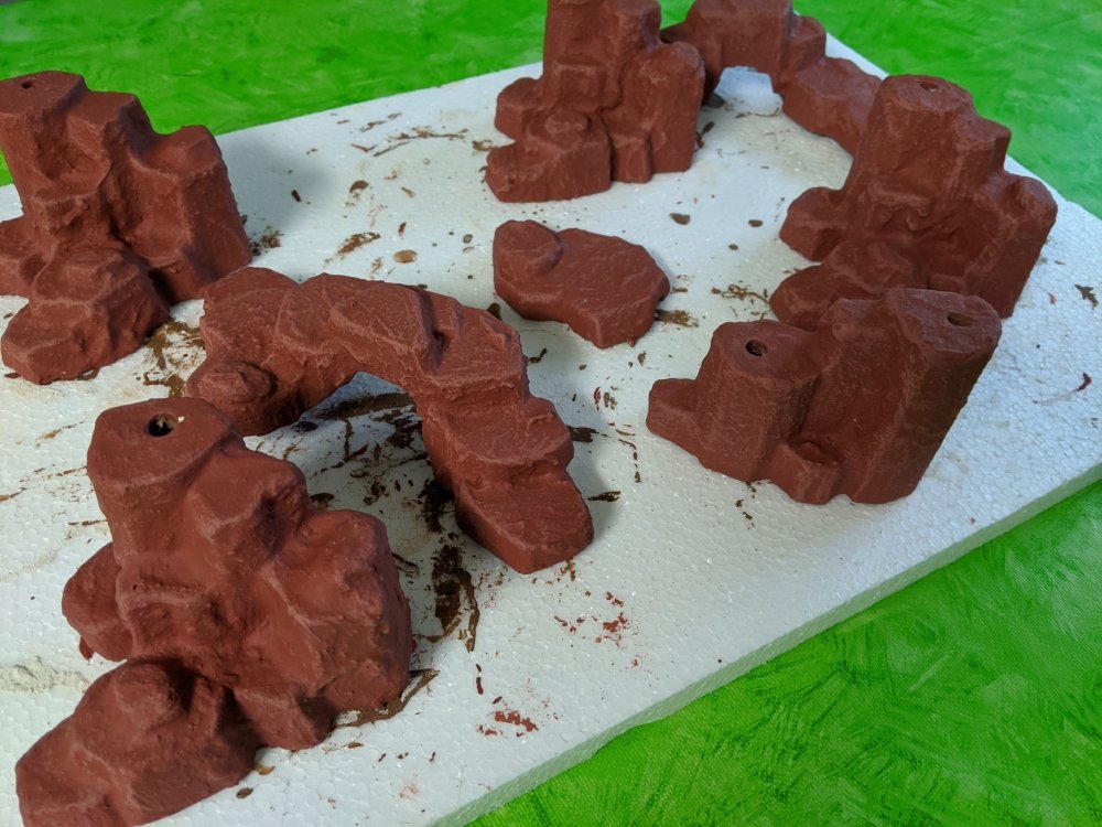 Bei den Felsen habe ich die Struktur mit Gips gemacht und anschließend bemalt und gebürstet.