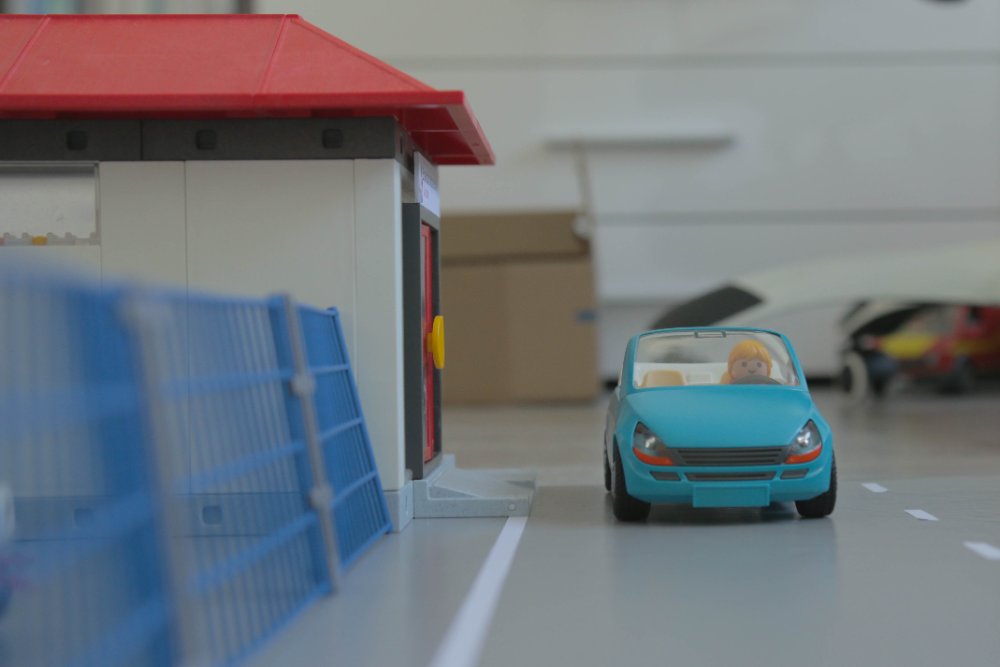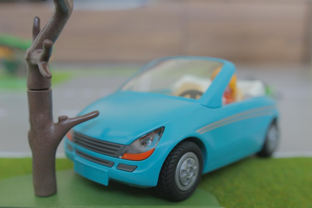 Schicke Wagen! Bei den Bauzäunen sieht man, warum ich die Betonklötze verwendet habe. Die Zäune fallen einfach um