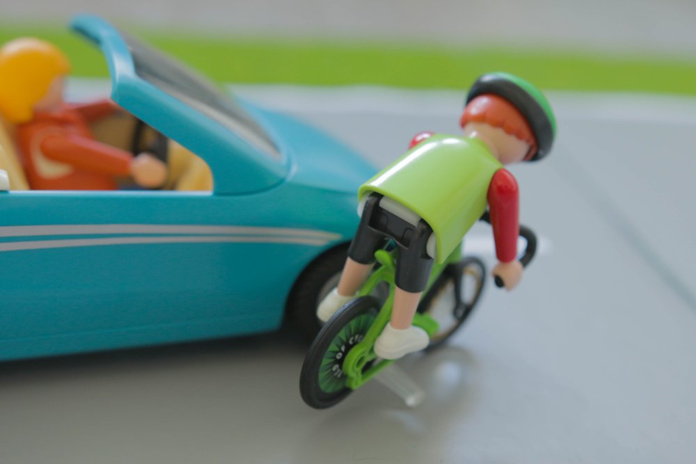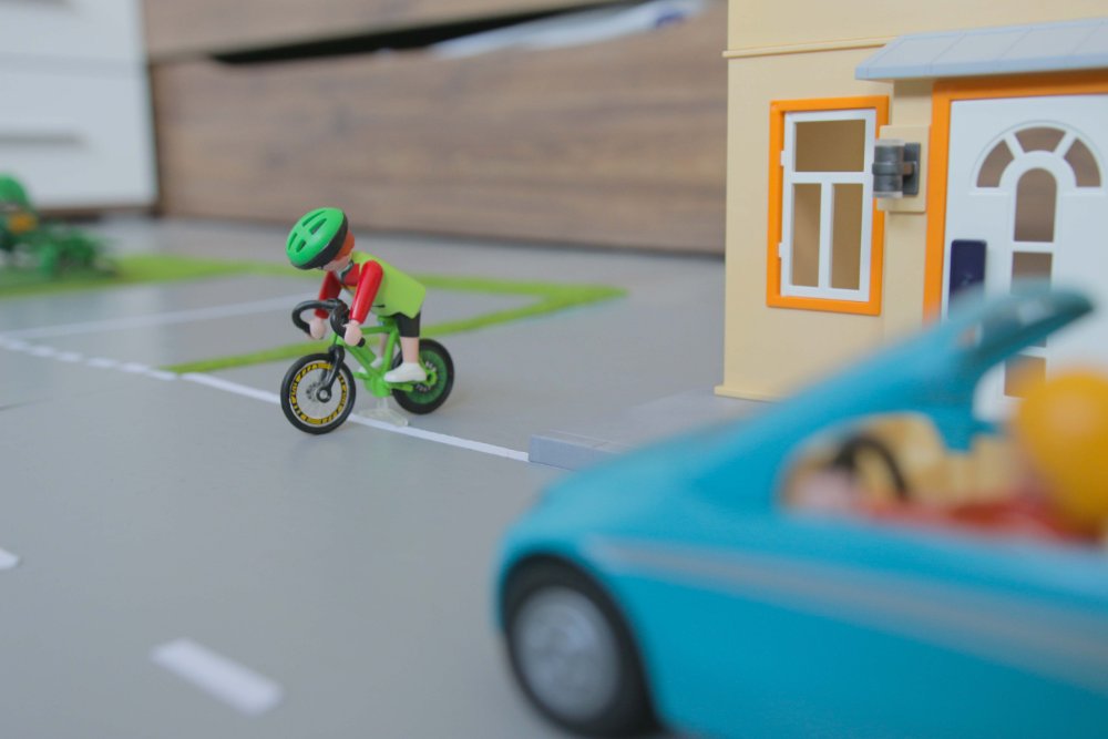 “Ach, auch das noch. Was soll denn der ****, ich bin sowieso schon zu spät dran”, flucht der Fahrer. Dabei erkennt er nicht, dass von rechts ein Radfahrer auf die Fahrbahn schnippst.