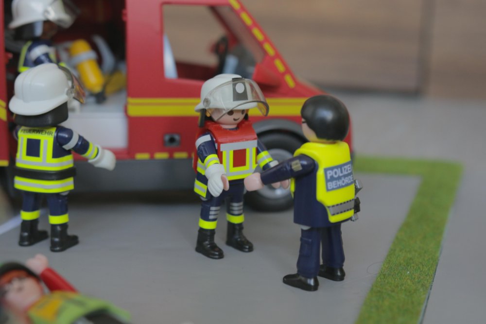 Auch die Polizei ist eingetroffen und lässt sich von Philipp die Lage schildern.