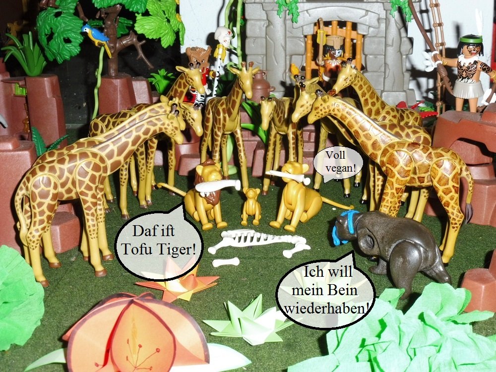 wer, wenn nicht die Giraffen, wären besser geeignet den Veggieday im Urwald