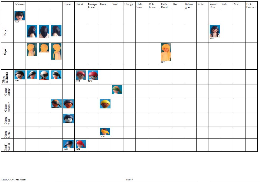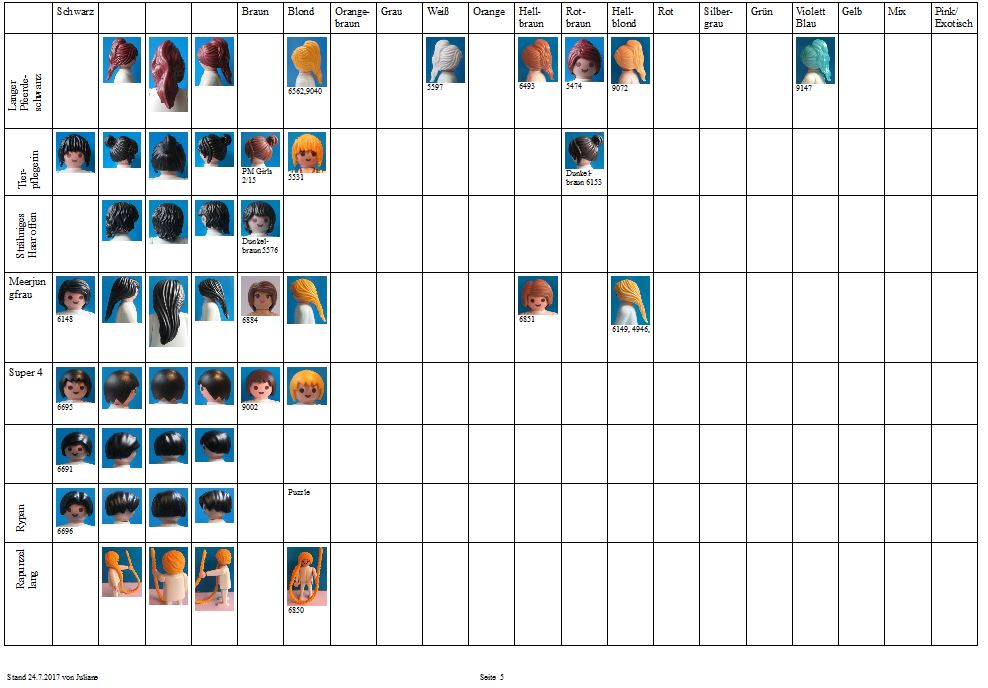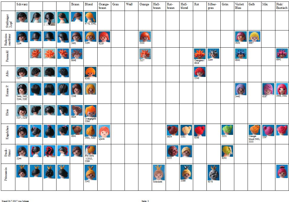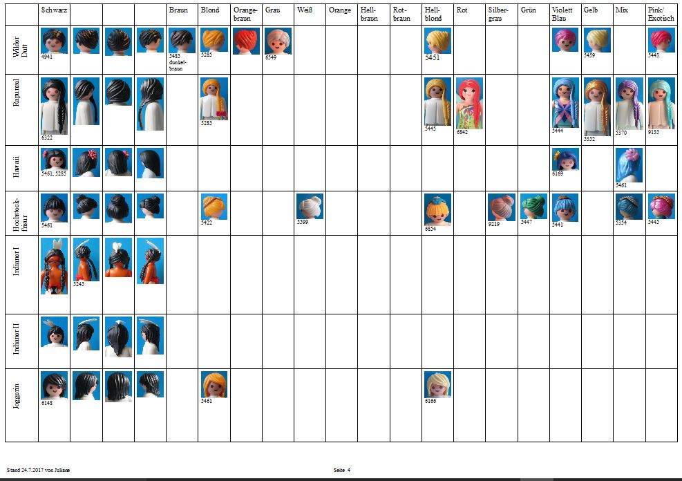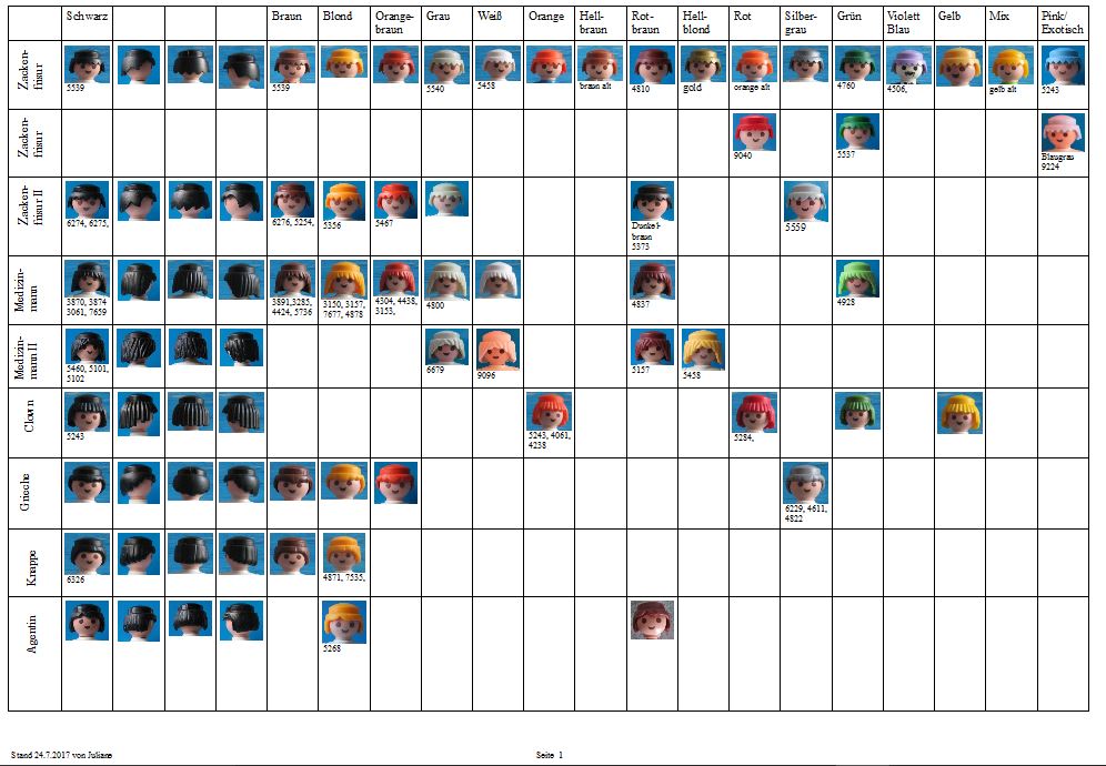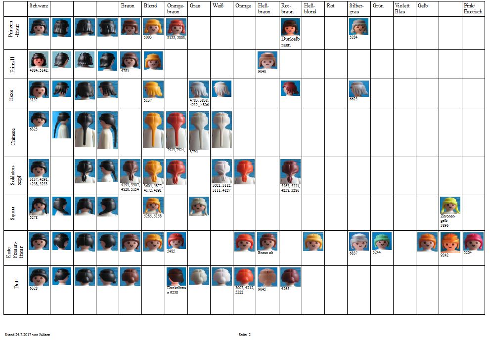 Ich bin ein neues Mitglied des Forums aus Spanien (ich benutze einen Online-Übersetzer, verzeiht mein Deutsch). Ich habe mich in der Newbie-Ecke vorgestellt. Ich möchte mit der Haar- und Bartkollektion dazu beitragen. Ich möchte allen Leuten danken, auf deren Arbeit ich meine eigenen Recherchen gestützt habe: den Benutzern dieses Forums, insbesondere Juliane, Heather von PlaymoDB und GrahamB von Playmofanatic. Ich habe eine kleine Playmobil-Sammlung (die meisten davon sind tatsächlich von meinen Söhnen), daher kann ich von vielen Teilen keine eigenen Fotos zur Verfügung stellen, aber ich hoffe, dass ich auch mit einigen Fotos aus dem Internet helfen kann.