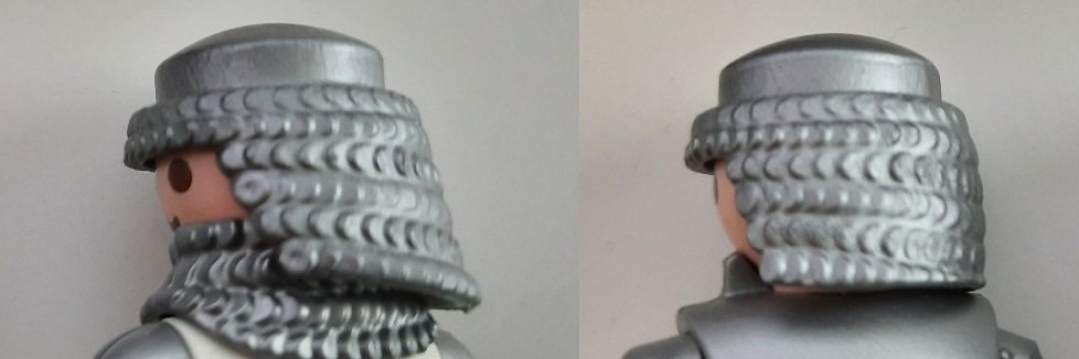 Der erste Beitrag, den ich machen möchte, bevor ich über neue Teile poste, besteht darin, die Varianten zweier Haartypen zu unterscheiden. Der erste ist die Kettenhaube. Es gibt zwei Varianten: „Perücke-Kettenhaube“ und „Perücke-Kettenhaube II“. Der Unterschied liegt im Rücken: Die zweite Version wurde "geschnitten", um sie mit mehr Helmen und Halsbändern kompatibel zu machen. Ich füge Bilder von gold- und silberfarbenen Versionen bei. Links alt, rechts neu.
