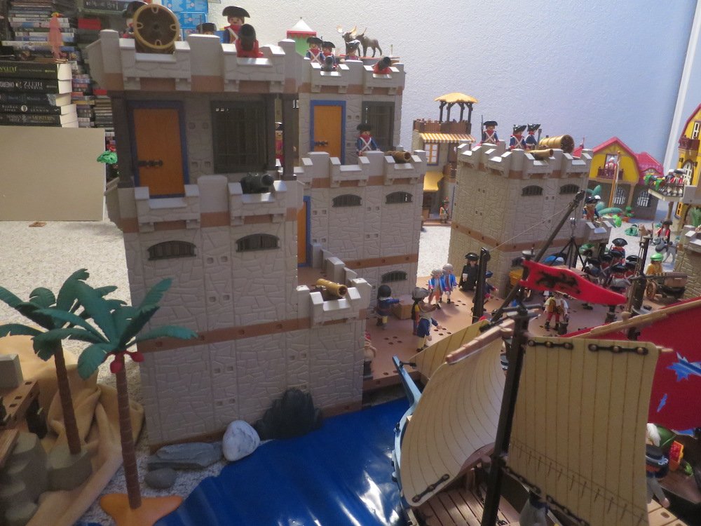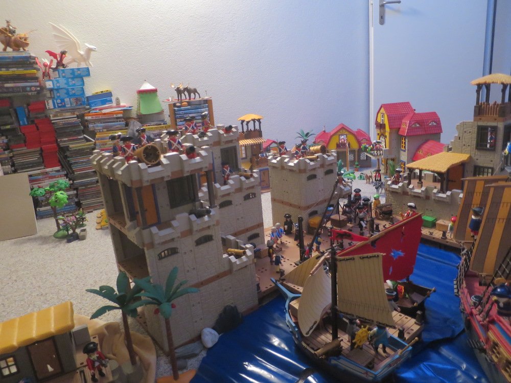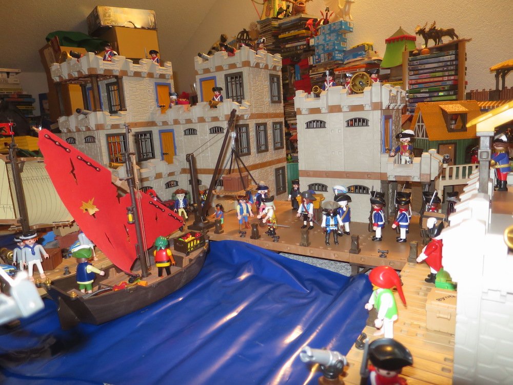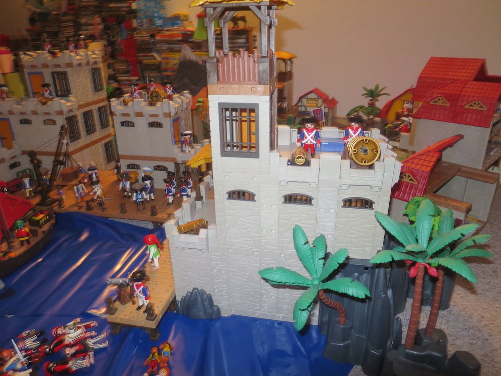 kurz bevor ich alles wieder wegräume, wollte ich mal eben meine Sodatenfestung zeigen. Ich habe die Teile von meinem Bruder übernommen und wusste nicht, dass es soviel werden wird. Da ich Aufräumen muss, konnte ich leider nur einen Teil der Blauröcke und Piraten aufstellen.