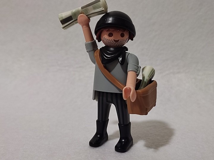 Ich habe receviert viele alte Figuren auf dem Basar. Mit ein paar gelben Aufklebern habe ich die Hose verbessert. Und zum Glück hatte ich Schals, Hüte und Mützen.