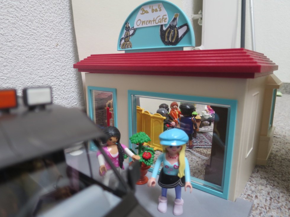 der sie pünktlich am Samstagabend an einem kleinen orientalischen Kaffeehaus absetzt.