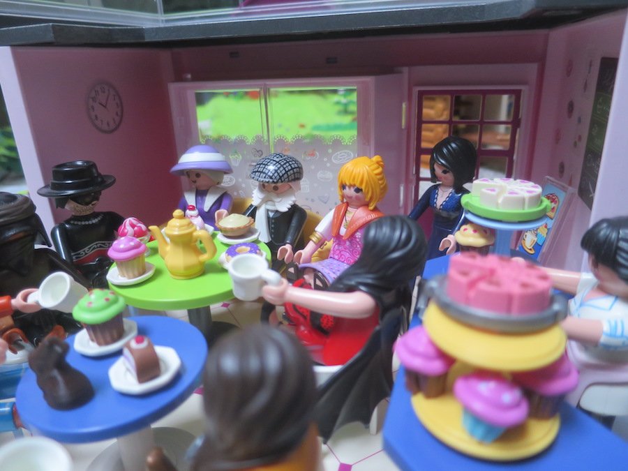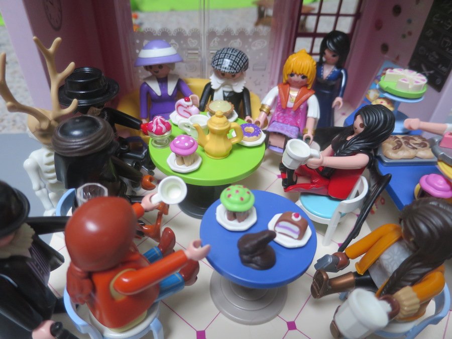 Die Stimmung ist gut und schon fliegen ihnen alle Neuigkeiten zu: "Probiert den Kaffee mit Zimt und Kardamon.", "es ist ein Mädchen: Sissi heisst sie!", "Heute gibt es leckere unvergleichliche Vanillekipferl. Köstliches Hüftgold!" Kommt es von den Damen der Runde, wohingegen die Herren nur über ihre Diabetis jammern. "Weihnachtszeit, so herzig!" tönt es aus der Ecke.