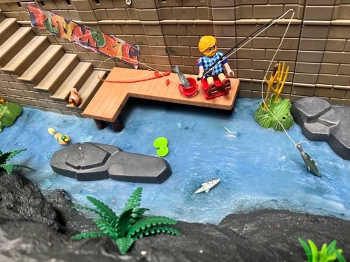 Es wird auf einer Seite eine Art Neubaugebiet sein mit Tankstelle und mit Mc Klicky sein also mit Playmobil Diner