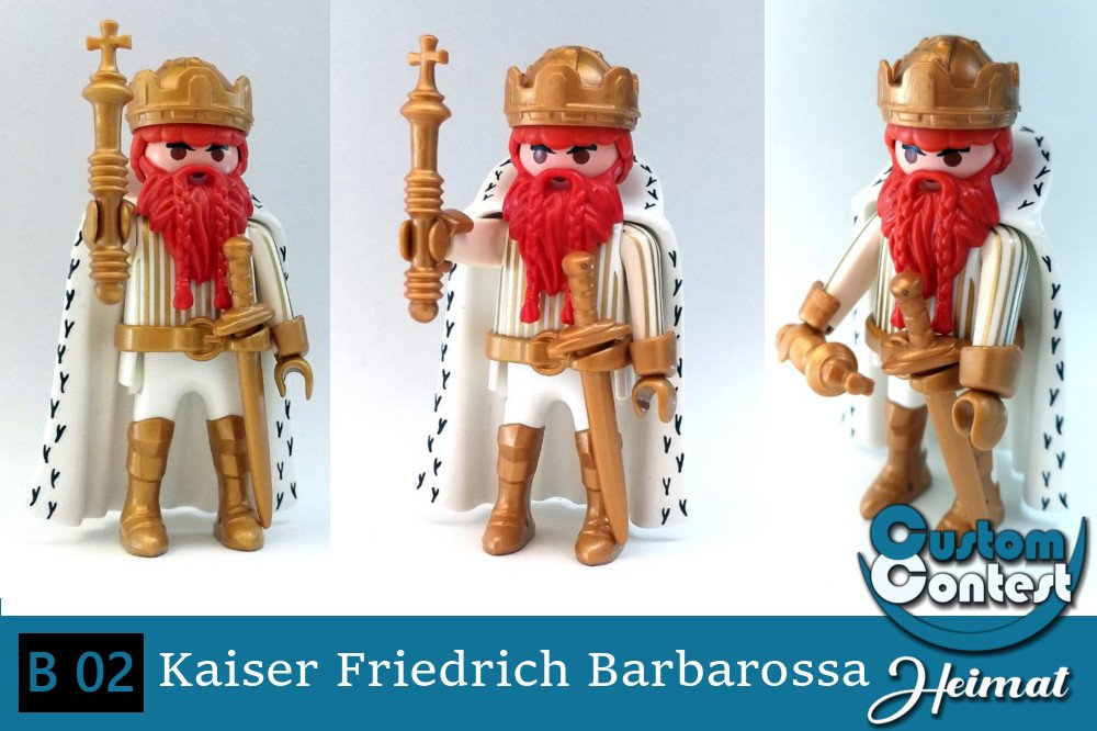 (B 02) Barbarossa: Und da ist er schon, der "Wow"-Faktor, und das bei einem König, Könige gibt's in der Playmobil-Welt ja wirklich massenhaft. Aber dieser hier hat wirklich das gewisse etwas, außerdem großer Wiedererkennungswert und plausibler Heimat-Bezug. 10 Punkte