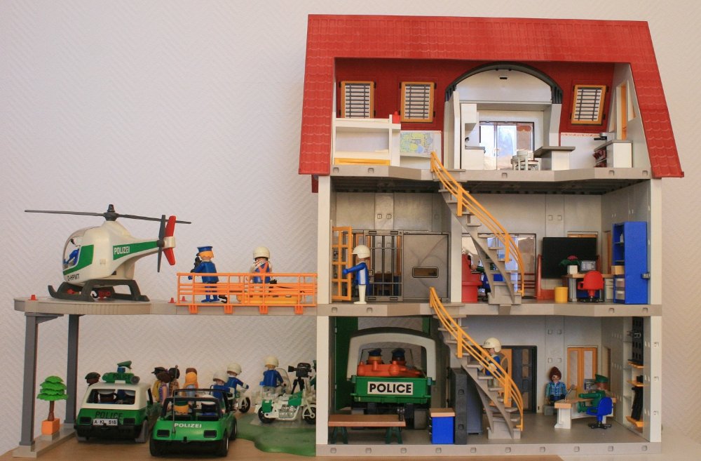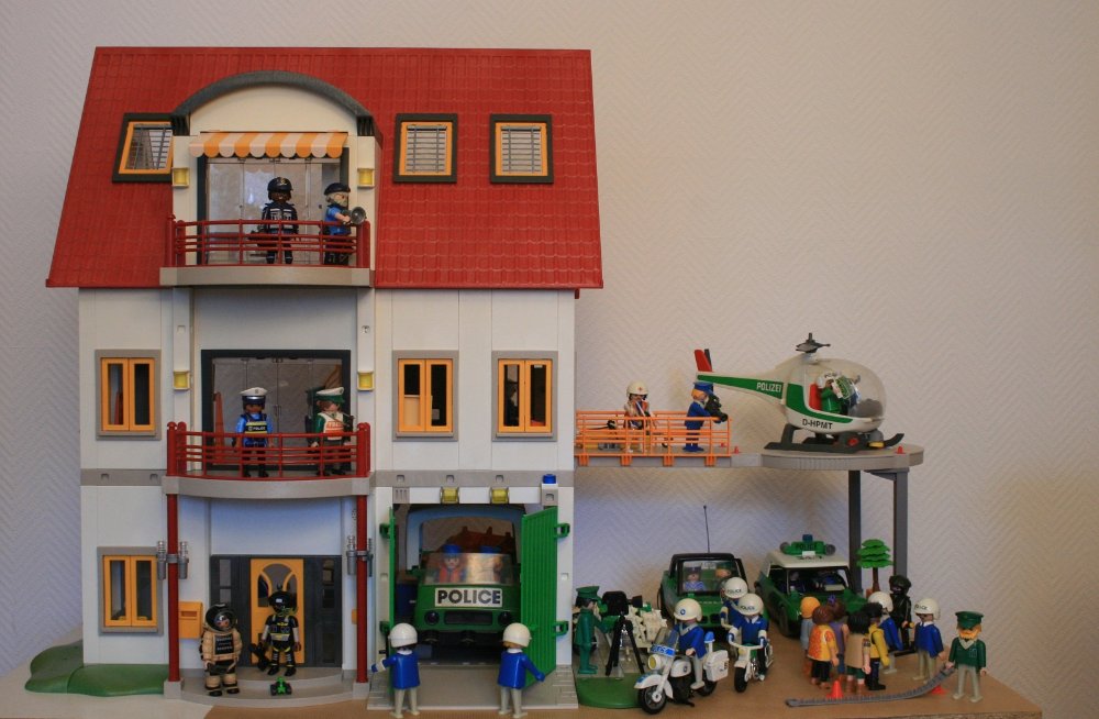 Hier ist meine Polizei-Einheit. Früher musste ich als Kind immer die Puppenstube von meiner Schwester beschlagnahmen, um es als Polizeiwache zu nutzen (alternativ auch als Feuerwache und als Krankenhaus). Ich habe es jetzt in etwa so nachgebaut, wie es damals eingeteilt war: