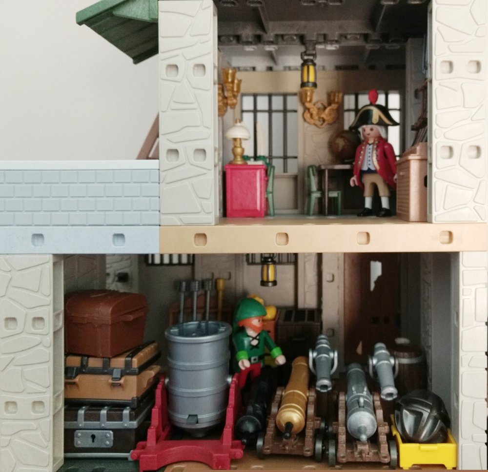 bei mir ist das neue Fort 70944 angekommen. Ich nutze die Teile für die Erweiterung anderer Bauwerke. In dem Fall habe ich die Gefängnisfestung 3112 ( https://www.playmobil.de/gefaengnisfestung/3112-B.html ) mit dem System-X-Teilen vom Steinhaus des Forts erweitert. Unten ist das Lager der Kanonen. Es hat ein großes Tor für die Kanonen. Darüber liegt das Büro des Hafenkommandanten. Oben befindet sich der Turm mit der Signallaterne (Leuchtturm wäre bei der Funzel wohl zu viel gesagt).