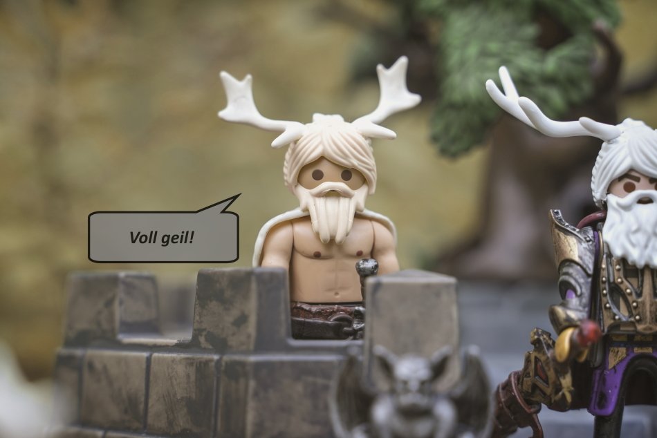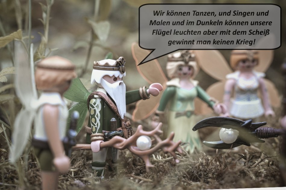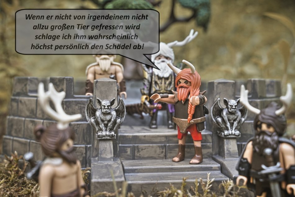 Am Morgen als ich die Bilder machen gehen wollte ist mir aufgefallen das die Gute dem Bären erzählt sie hätte ihm ein Steak eingepackt, sie aber gar keinen Rucksack o.ä. dabei hat, daher hat der Köcher kurzerhand eine Tasche bekommen, also nicht das ich mich so richtig um Realismus kümmern würde aber ich dachte das macht mehr Sinn