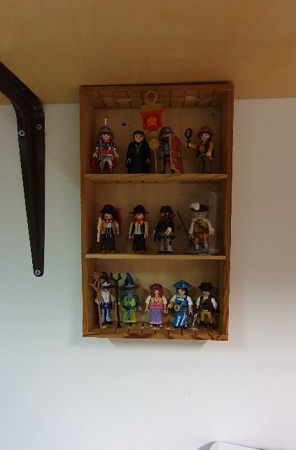 es ist zwar kein ganzes Playmobilzimmer, aber in in einem unserer Wohnzimmer stehen nun zwei Vitrinen, dich ich komplett selbst gebaut habe (weil es einfach keine in passender Größe gab).